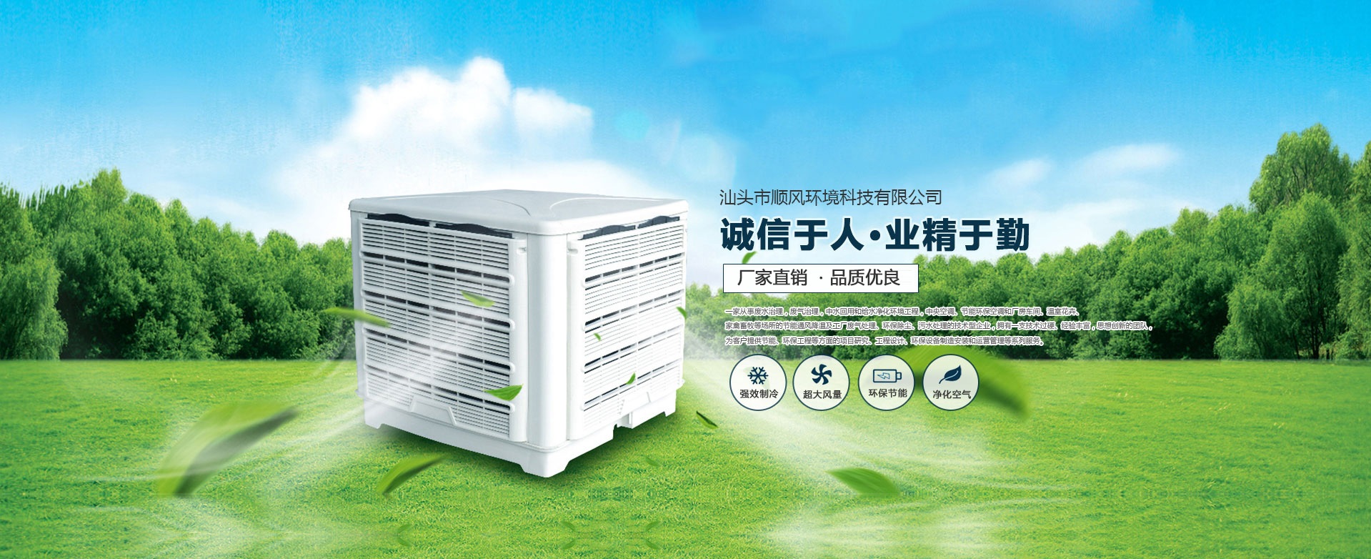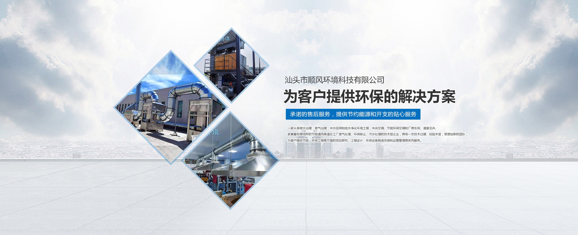 汕頭市順風(fēng)環(huán)境科技有限公司,是一家專注從事廢水治理,廢氣治理,中水回用和給水凈化環(huán)境工程,中央空調(diào)、節(jié)能環(huán)保空調(diào)和廠房車間、溫室花卉、家禽畜牧等場所的節(jié)能通風(fēng)降溫及工廠廢氣處理、環(huán)保除塵、污水處理的技術(shù)型企業(yè),擁有一支技術(shù)過硬、經(jīng)驗豐富,思想創(chuàng)新的團隊,為客戶提供節(jié)能、環(huán)保工程等方面的項目研究、工程設(shè)計、環(huán)保設(shè)備制造安裝和運營管理等系列服務(wù)。 多年來,公司堅持 “ 誠信于人,業(yè)精于勤” 的宗旨,憑借豐富的工作經(jīng)驗及雄厚的技術(shù)實力為多家大型公司、工廠、養(yǎng)殖、超市等大型綜合場所進行節(jié)能通風(fēng)降溫及廢氣處理、污水處理等工程設(shè)計、安裝、維修、年度保養(yǎng),得到了顧客的一致好評并長期合作。